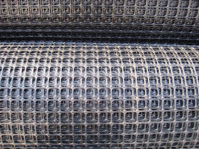 土工格栅常用作加筋土结构的筋材或复合材料的筋材等,经过拉伸形成的具有方形或矩形的聚合物网材,按其制造时拉伸方向的不同可为单向拉伸和双向拉伸两种。它是在经挤压制出的聚合物板材(原料多为聚丙烯或高密度聚乙烯)上冲孔,然后在加热条件下施行定向拉伸。单向拉伸格栅只沿板材长度方向拉伸制成;双向拉伸格栅则是继续将单向拉伸的格栅再在与其长度垂直的方向拉伸制成。